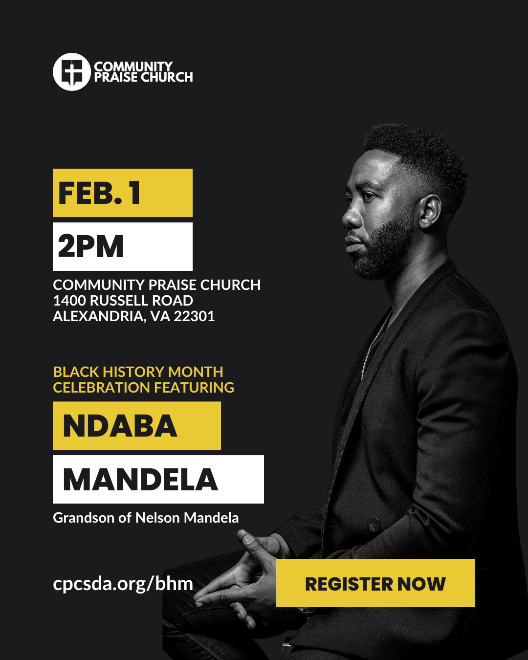 On Sunday, February 1st, Community Praise Church is hosted a special Black History Month celebration featuring Author/Speaker Ndaba Mandela, the grandson of Nelson Mandela.