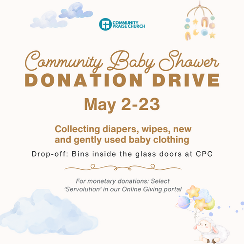 Join Health Ministry & Servolution for the CPC Community Baby Shower to occur on Sabbath, May 30—help us bless growing families!